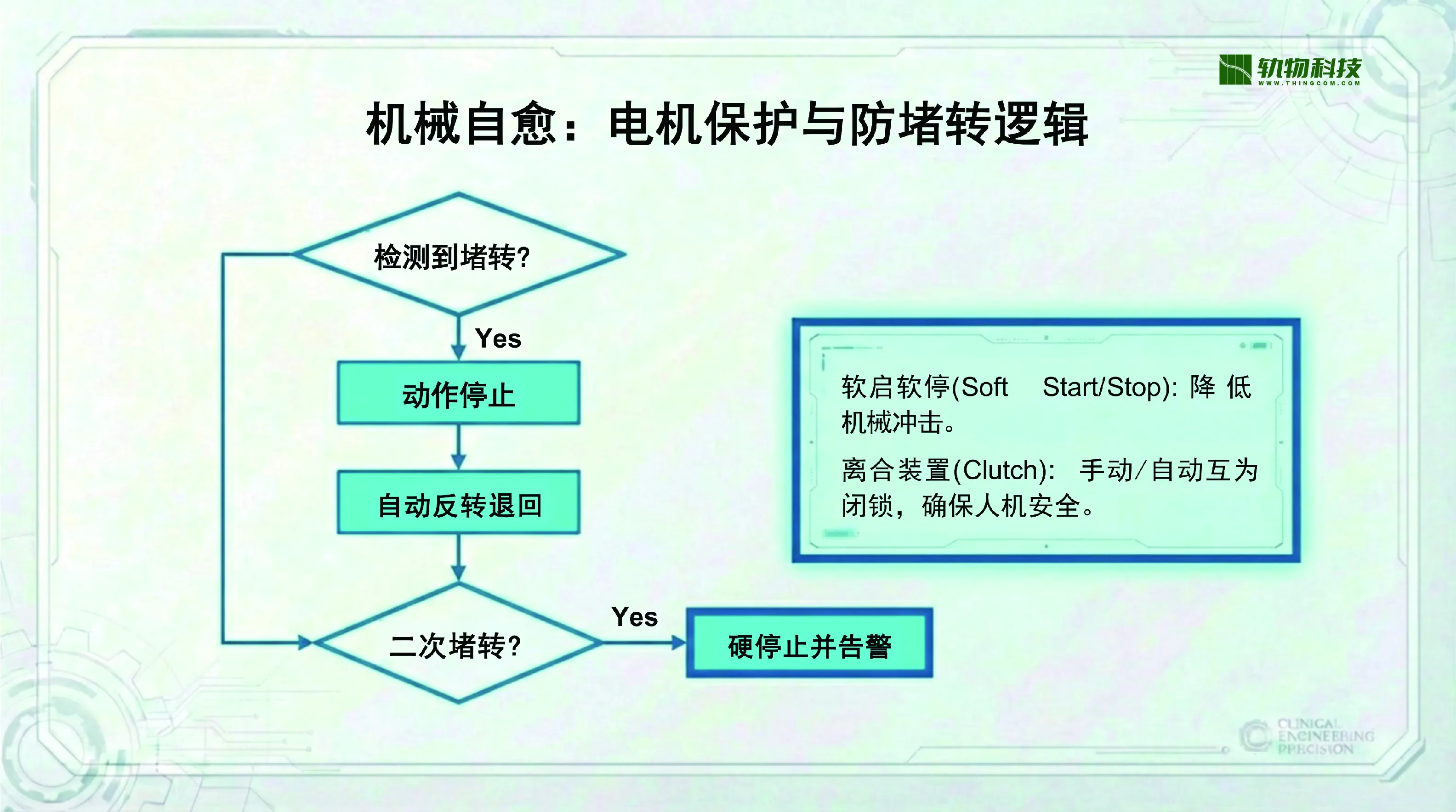 多维保护逻辑的先行与闭锁 :这 5 秒并非孤立存在,它与电机的堵转保护及软启软停机制协同。在 Tcd 开始“充电”前,系统早已通过高精度的电流监测判定电机是否发生异常。若在执行阶段发生堵转,系统会触发“停止并反转归位”逻辑。只有在排除了一切机械与电气故障、且位置信号稳定后,Tcd 才会接管后续的逻辑确认,构建起本质安全的防御阵线。