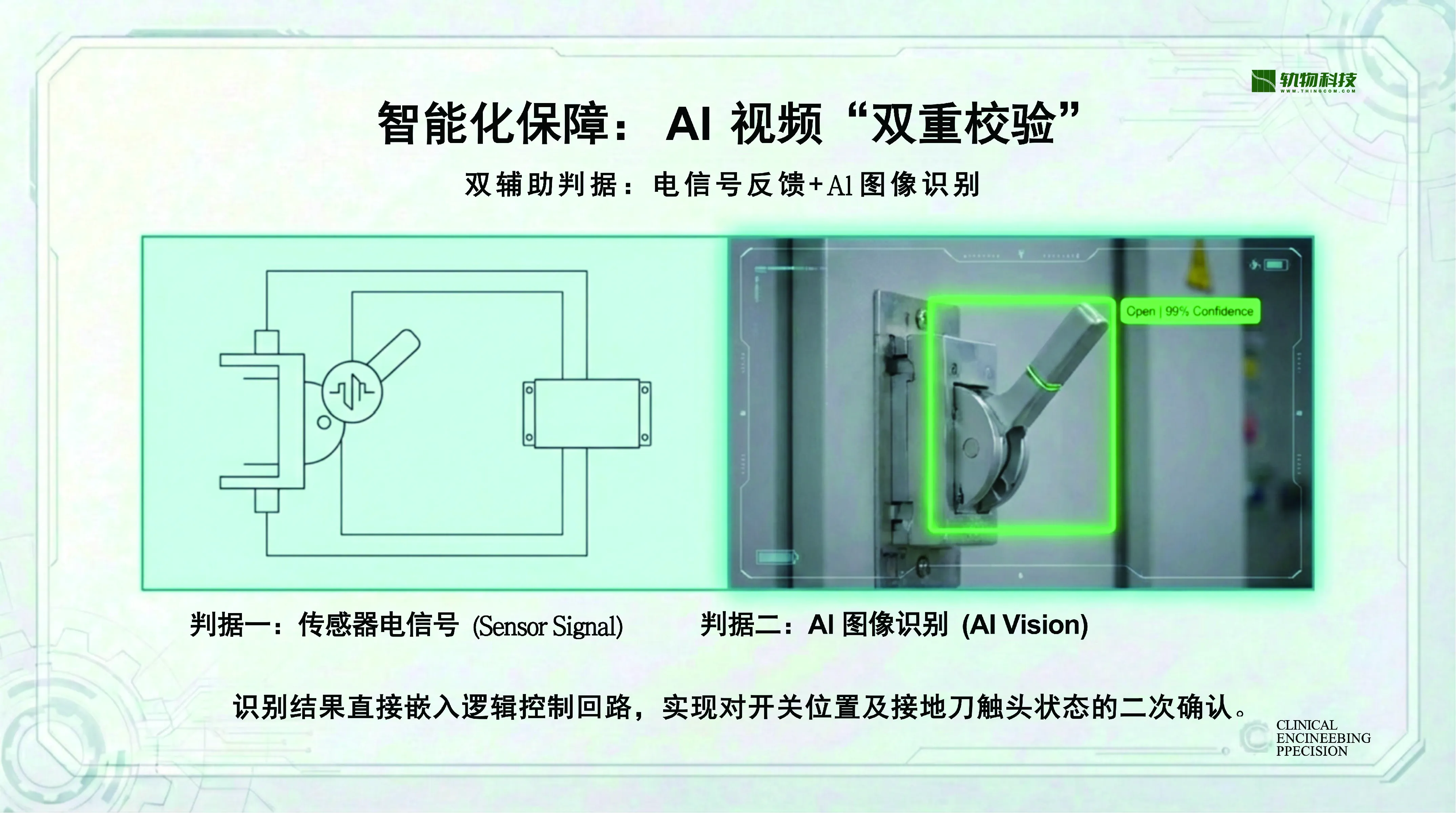 · 双辅助判据:AI 视频识别: 为了破解单一电气信号可能存在的假位风险,系统引入了视觉确认。通过 SR-2010S 或 Kgg-05 视频头,利用 AI 算法对刀闸、手车的真实物理位姿进行识别。这种“电信号辅助+视频主判”的双重确认逻辑,与 Tcd 机制共同构成了一道坚不可摧的安全防线。